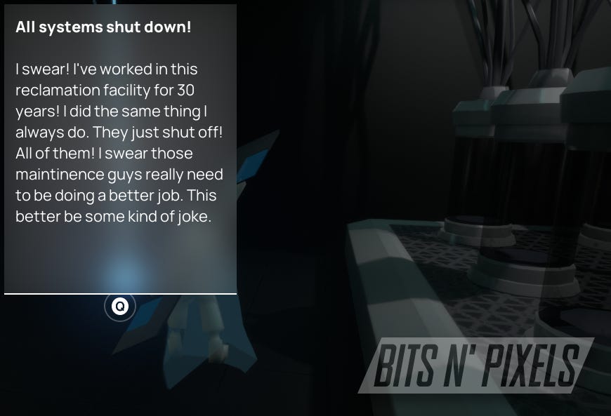 From there I was able to work those characters that I had created in those small moments into other places. I did multiple passes through the station as new information came to me, correcting old info, and adding info from multiple time periods so the player is not just handed info linearly. They slowly uncover the tragedy of the station and work backwards from “station is destroyed and overrun with robots.”