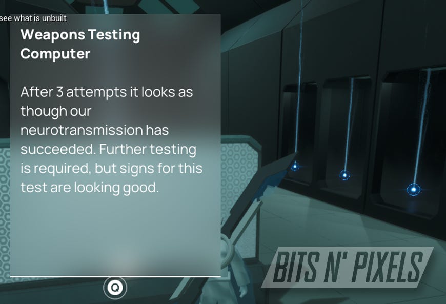 The modules that the player picks up exist along a timeline from “Things sent at the launch of the station” which are written very bureaucratically. I always get a kick writing these. There is something so funny about writing what qualifies confetti at a birthday party. Then there’s experimental weapons developed after the launch of the station. After that are weapons hack-need together by human resistance, and weapons designed by the AI to fight the resistance (which wouldn’t have accessible documentation for the player to read).