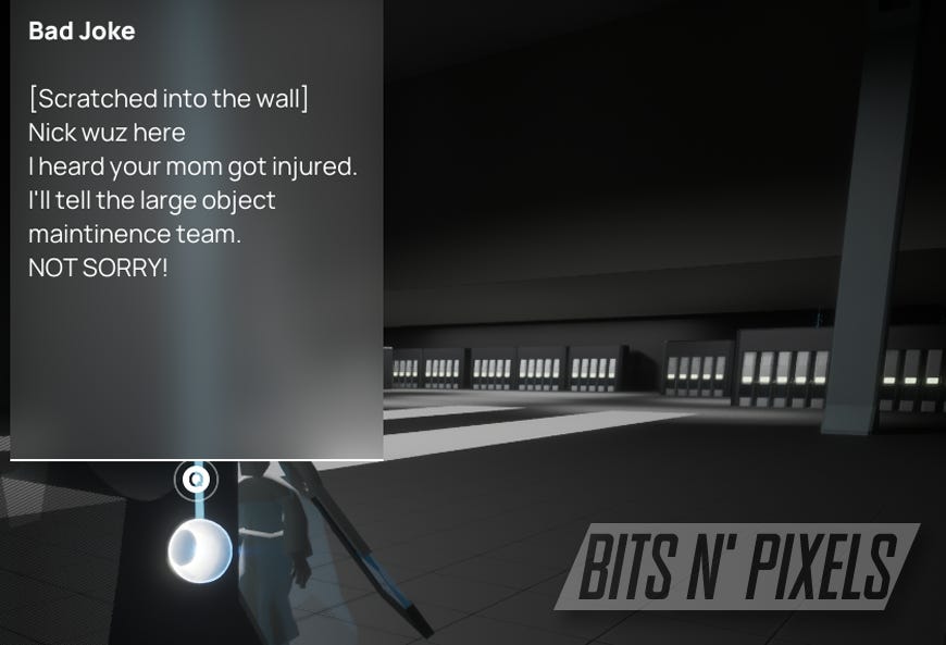 Overall I’m very happy with what I was able to produce. I’m always so happy with the level of character I’m able to inject into something. Like yeah this was a station with people on it, who did things. People left secret notes on walls, love letters, “yo mama jokes”, blocked emergency calls. They lived their lives here and I get to tell the player all this. For my next project, and certainly for other developers write player focused dialogue early! Obviously be blocking your story at the same time, but the fun detail comes from sitting in some world and immersing yourself in it. I think for a future project I wish that I had the ability to do some of this sooner so that I could then tell the level designer the things that I had discovered about the spaces that they had created and we could go in and add micro-detail to the spaces. I really think that’s the best way to create spaces that feel real is by having a molding back and forth conversation between multiple professionals.