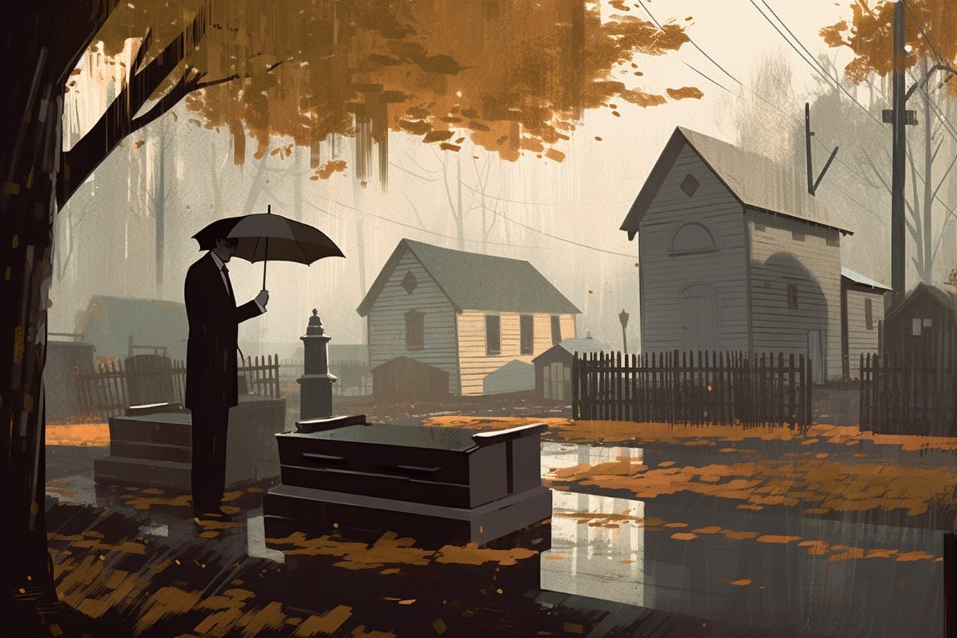 A rainy fall morning in small town, USA. The sky wept down upon the old town cemetery. The gentle pitter-patter of raindrops fell upon a wooden coffin. Jack watched with a somber face as it slowly descended into the Earth. A grizzled Gulf War vet in his early fifties with a prosthetic left leg. He buried the only good thing in his life. A final goodbye to his wife, Jane. Cancer. A tough hand, but she put up one helluva fight.