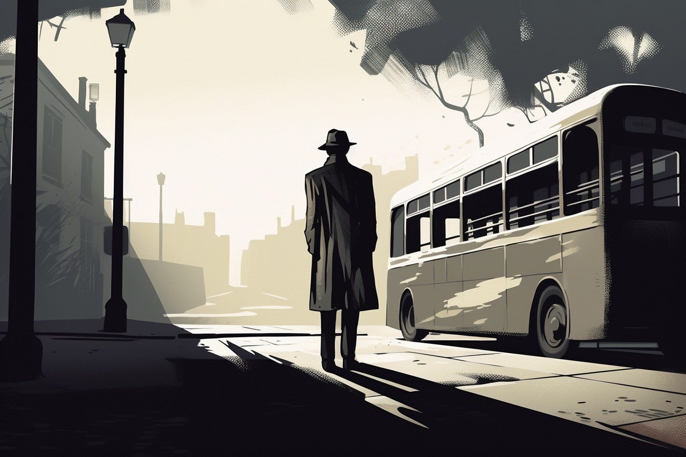 With that, Jack stepped outside into the morning light. His spirit rekindled. A bus pulled up to the curbside stop. The doors swung open, and the driver addressed him.